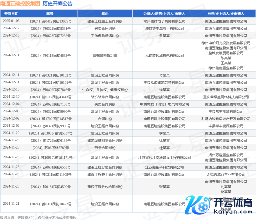 本站音问,阐发天眼查APP露馅,近日公布了一则南通五建控股集团有限公司行为被告/被上诉东说念主的开庭公告,沉静实质如下: