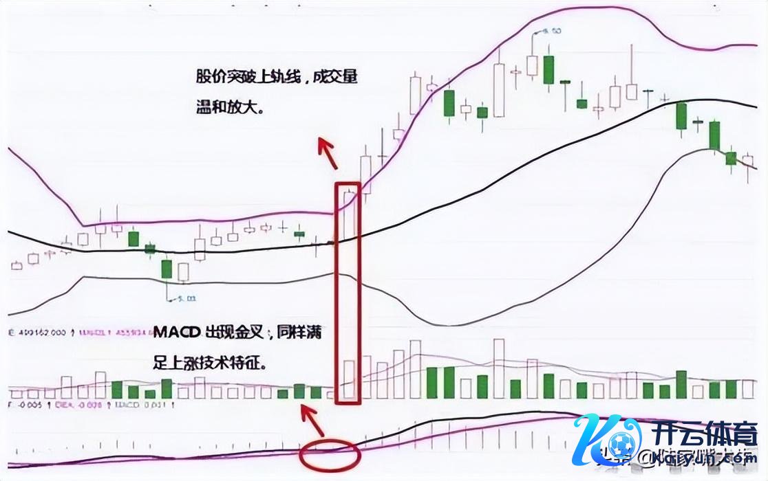 从表面上来说,股价冲出上轨线,意味着股价短期内高涨幅渡过大、速渡过快,市集情愫过度乐不雅,出现了超买景观,股价随时可能濒临回调压力。比如,某股票在短期内流畅涨停,股价赶紧冲出布林线上轨,随后市集存眷渐渐冷却,股价开动大幅回调。